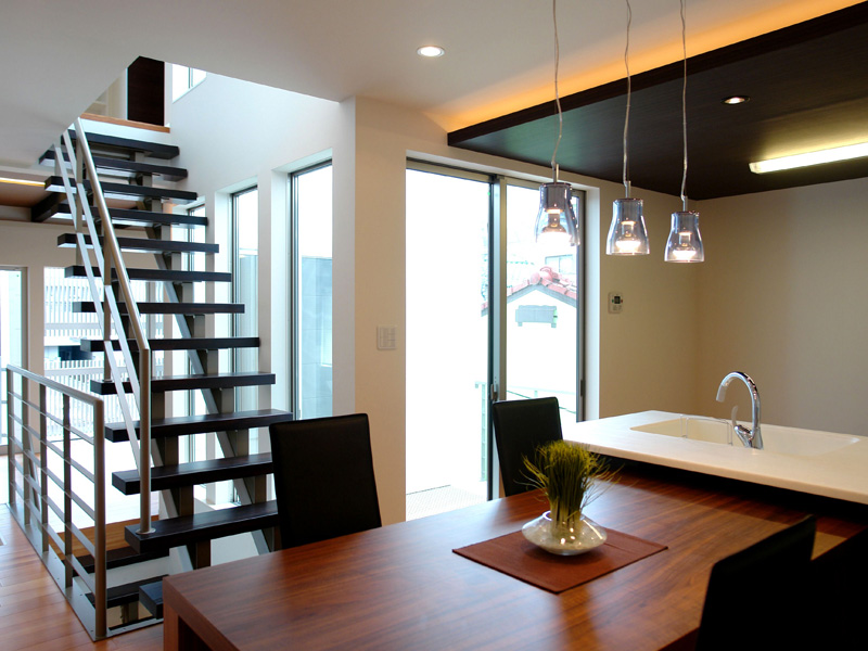 九州一の商業地・天神から近いこのお住まいは、狭小地という限られた条件のもと、無駄なく機能性の高い住宅をつくるために、3階建てをデザイン・施工しました。設計事務所による斬新でモダンな、デザイン豊かな住宅です。