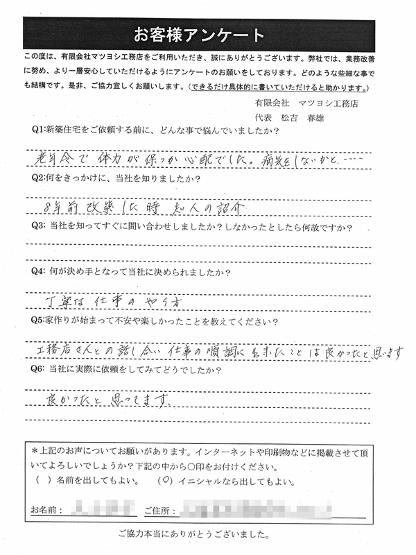 - 工務店さんとの話し合い、仕事の順調に出来たことは良かったと思います。